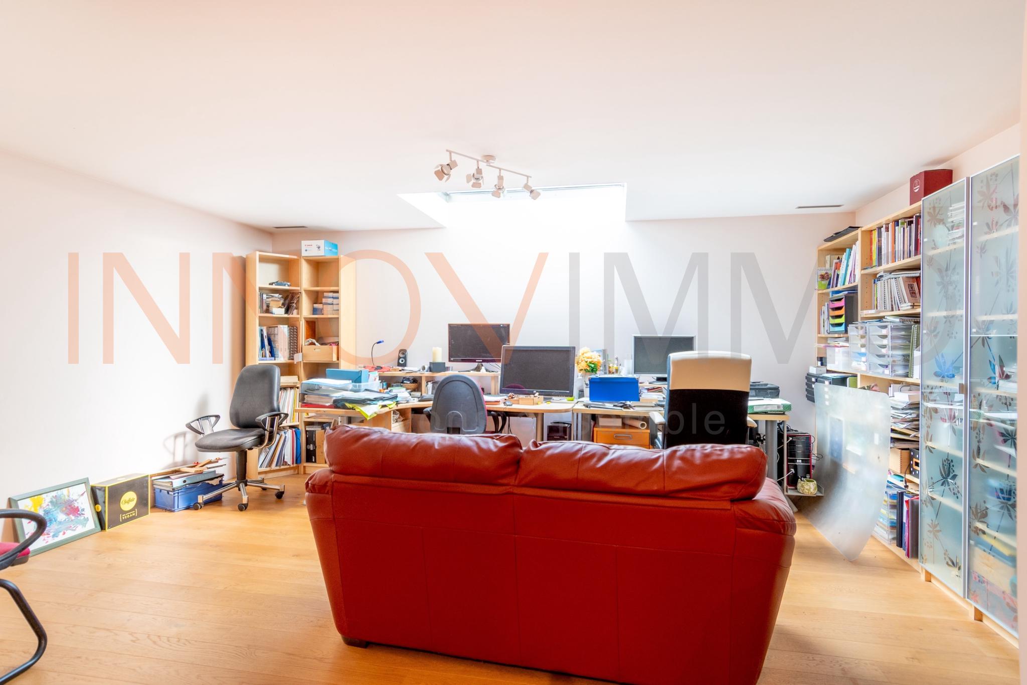 - Sous-sol : grande salle polyvalente agrémentée d’une kitchenette, espace bureau avec puits de lumière, buanderie avec salle de douche, garde-manger et local technique.